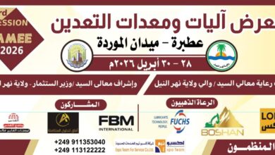 شركة “إكسبو تيم” تعلن عن انطلاق فعاليات معرض آليات ومعدات التعدين في عطبرة تحت رعاية السيد. والي ولاية نهر النيل وإشراف معالي السيد / وزير الاستثمار والصناعة والسياحة والمحاجر والتعدين-