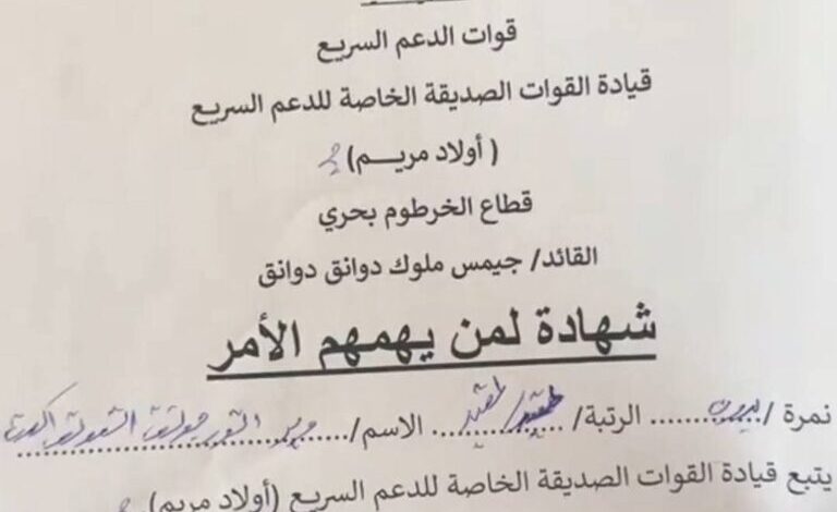 فوري نيوز حصلت علي وثائق مليشيا الدعم السريع تثبت تورط قوة من مرتزقة جنوب السودان بقيادة جيمس مجوك بمنطقة كافوري.