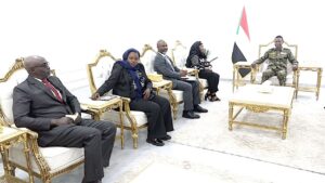 إلتقي عضو مجلس السيادة نائب القائد العام الفريق أول ركن *شمس الدين كباشي* اليوم وزيرة الخارجية الليبيرية سارا بيسولو بحضور وزير الخارجية السفير محي الدين سالم و المدير العام لوكالة الأمن القومي الليبيري.