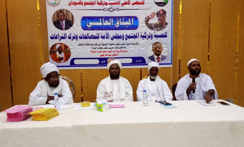 نظم المجلس ألأعلي للحسبة وتزكية المجتمع ومجلس الامة المصالحات وترك النزاعات بالسودان مؤتمره العام امس بقاعة الربوة برعاية عضو مجلس السيادة عبد الله يحي وتشريف رئيس مجلس السيادة ورئيس الوزراء قدم المستشار اكرم عبد الباقي تعريفا للنظام الاساسي للمجلس الاعلي للحسبهة وتزكية المجتمع واهدافه ورؤيته لحل الازمات قائلا إن المجلس له قانون مجاز من البرلمان وهو قانون هيئة تزكية المجتمع ومن اختصاصاته اصدار اللوائح لتسير وتنظيم عمل المجلس وضبط شؤون العضوية في الالتزام بالقانون واضاف قائلا قد صدر قانون التزكية بتوجيه من رئاسة مجلس الوزراء وصدر ايضا خطاب من وزارة الحكم الاتحادي لولاة الولايات بتنفيذ الاهداف الي ارض الواقع بناء علي خطاب صادر من وزير الشؤون الدينيه وياتي هدف تزكية المجتمع في القانون نشر القيم السامية لدي افراد الأمة والتصدي للغزو الفكري الضار ومقاومة اثاره وتشجيع الاحتساب والدعوة والحكمة والموعظه الحسنة والدعوة بالتي هي احسن والتوعية قبل التجريم تفاديا للأخطاء.